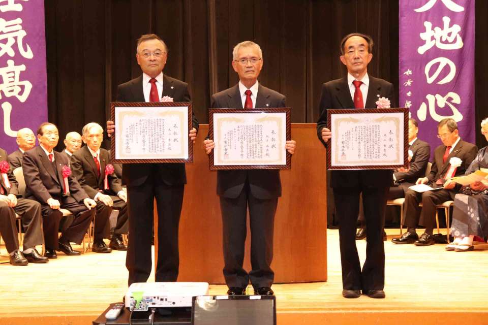 永年会員表彰・会員歴15年 左から.柴橋教場.大沼李岳・水多水岳・大江踏岳 |